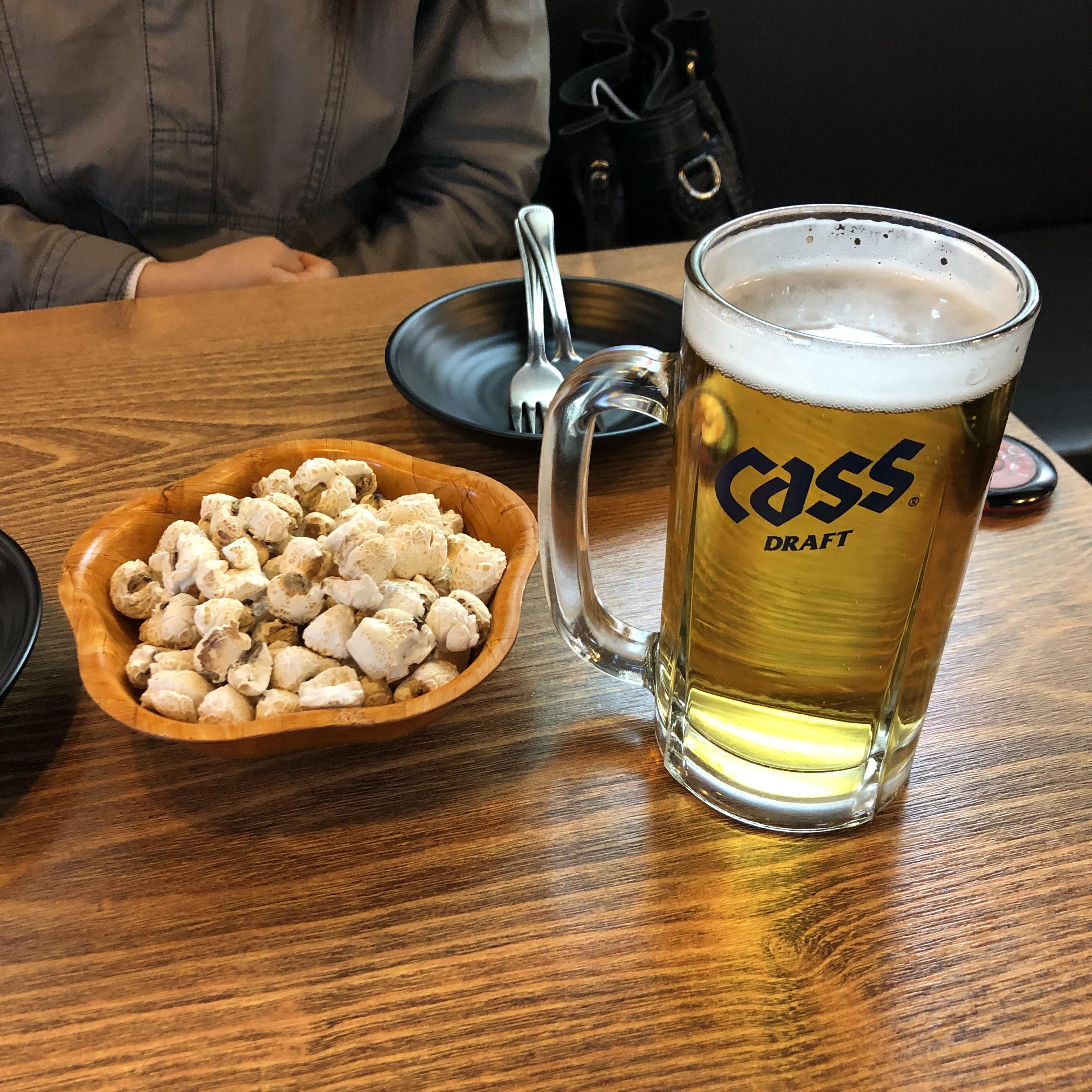 홀에서 먹으면 이렇게 강냉이 안주도 준다. 누지지 않고 바삭바삭 고소해서 맛있었다. 먼저 나온 맥주와 함께 와작와작 먹었다.
