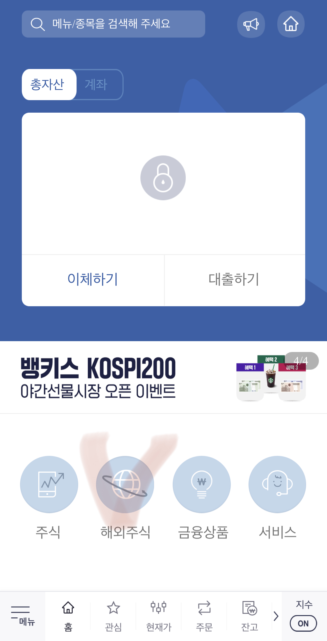 만약 한국투자증권에 국내 주식 계좌만 가지고 있는 경우에는 메인화면 중간쯤에 있는
