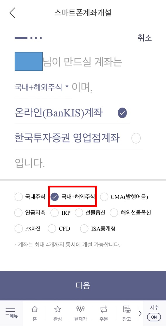 주식 거래를 하기 위해서는 먼저 증권사 주식 계좌를 만들어야 합니다. 해외 주식을 거래하기 위해서는 계좌 개설하실 때 계좌 유형을 '국내+해외주식'에 체크해야 합니다.