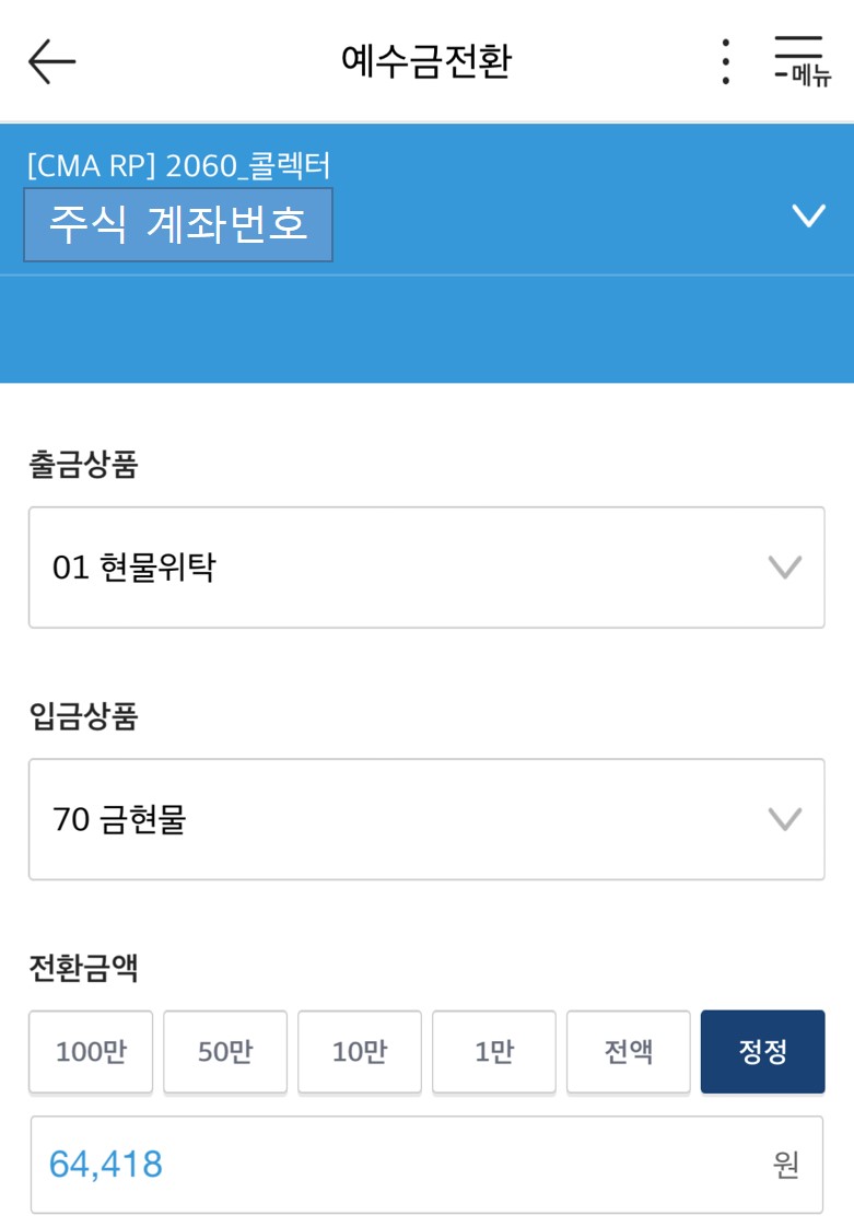 KRX 금 거래 신청을 하셨다면 이제 예수금 전환을 해야 합니다. 타행에서 신한금융투자 계좌에 돈을 입금하면 기본적으로 현물위탁 예수금으로 잡힙니다. KRX 금을 구입하려면 현물위탁에서 금현물로 예수금을 전환해야 합니다.