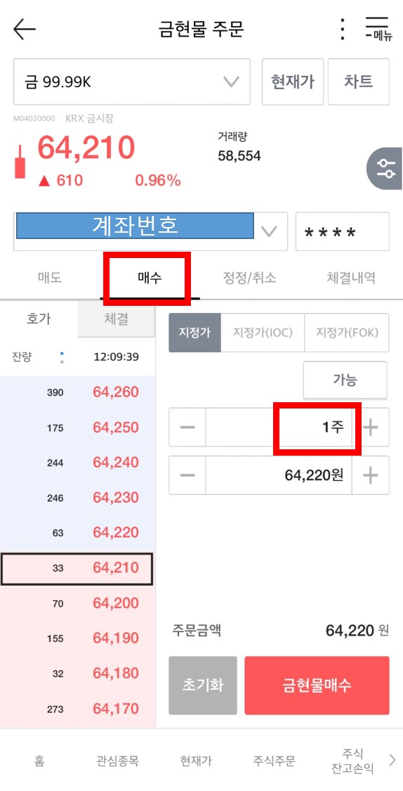 KRX 금 거래 신청하고 예수금 전환까지 완료되셨다면 이젠 KRX 금을 매수할 수 있습니다.