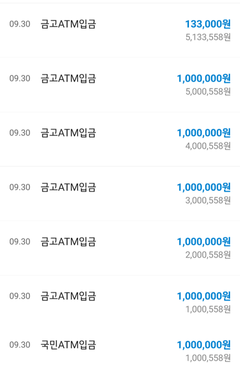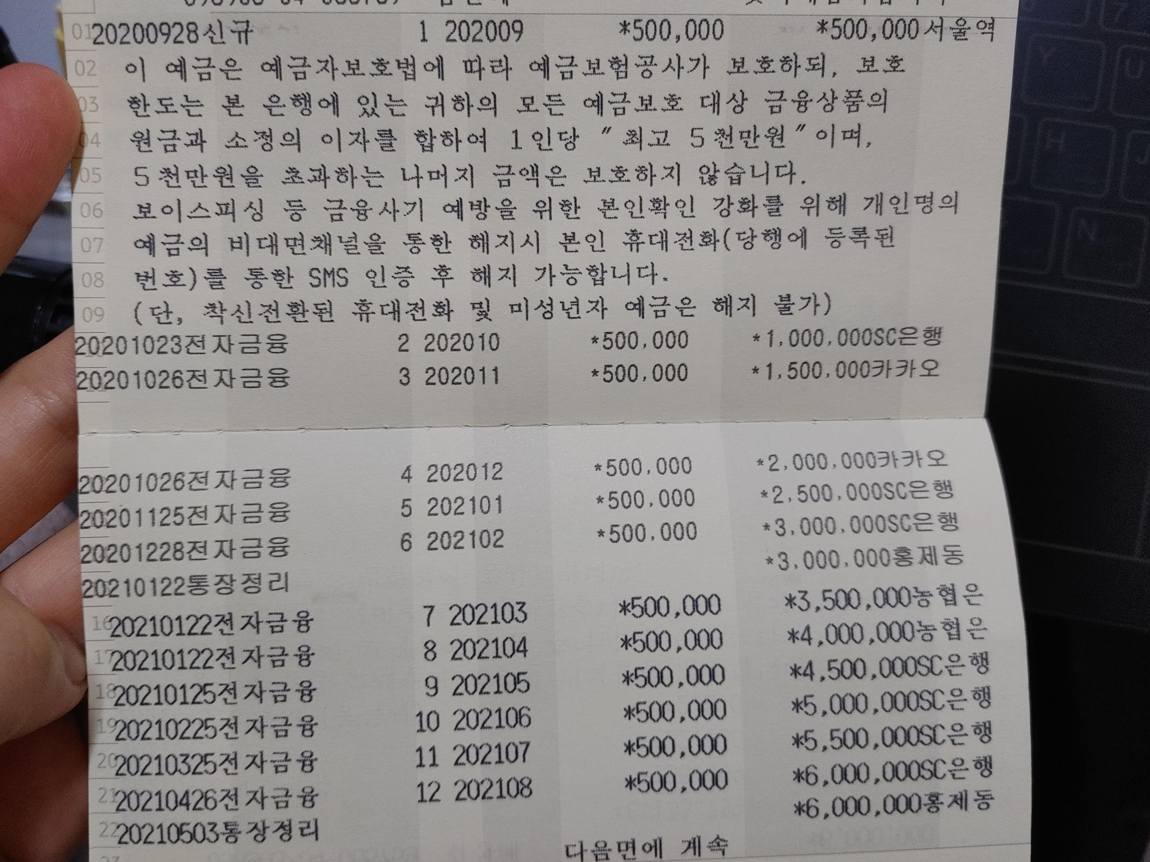 적금 만기의 행복을 오랜만에 느껴보았다. 현금으로 받은 돈을 바로 카카오 뱅크에 넣으려고 ATM에 갔다. 그런데 1회 입금 한도가 100만 원이었다. 하...;; 무려 6번에 걸쳐서 입금했다. 그나마도 지폐가 구겨지거나 찢긴 게 있어서 반환되기 일쑤였음. 어렵게 ATM으로 600만 원 입금 성공! 뿌듯하구먼!!! #재테크 #투자 #초보투자자