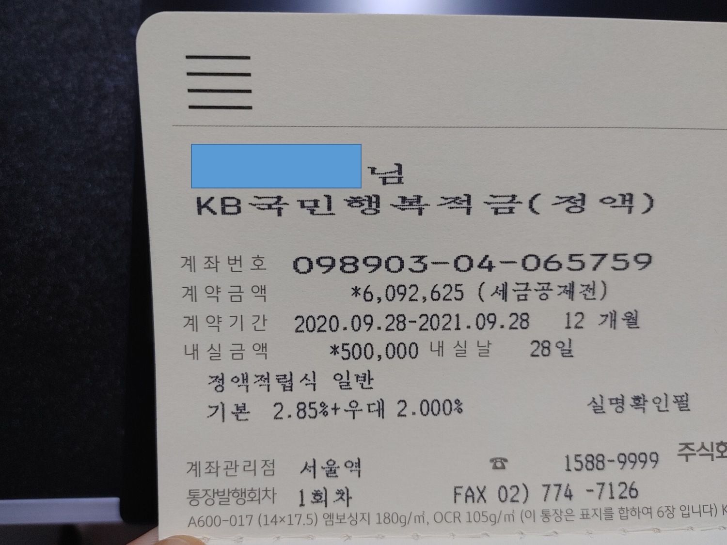 두둥! 어느덧 1년이 지나 KB 국민행복적금 만기일이 되었다. KB 국민행복적금은 기초생활수급자, 북한이탈주민, 결혼이민여성, 근로장려금 수급자, 한부모가족지원 대상자들에게 시중 금리보다 높은 금리를 제공하는 적금 통장이다. 나는 작년에 근로장려금 수급자여서 이 적금에 가입할 수 있었다.