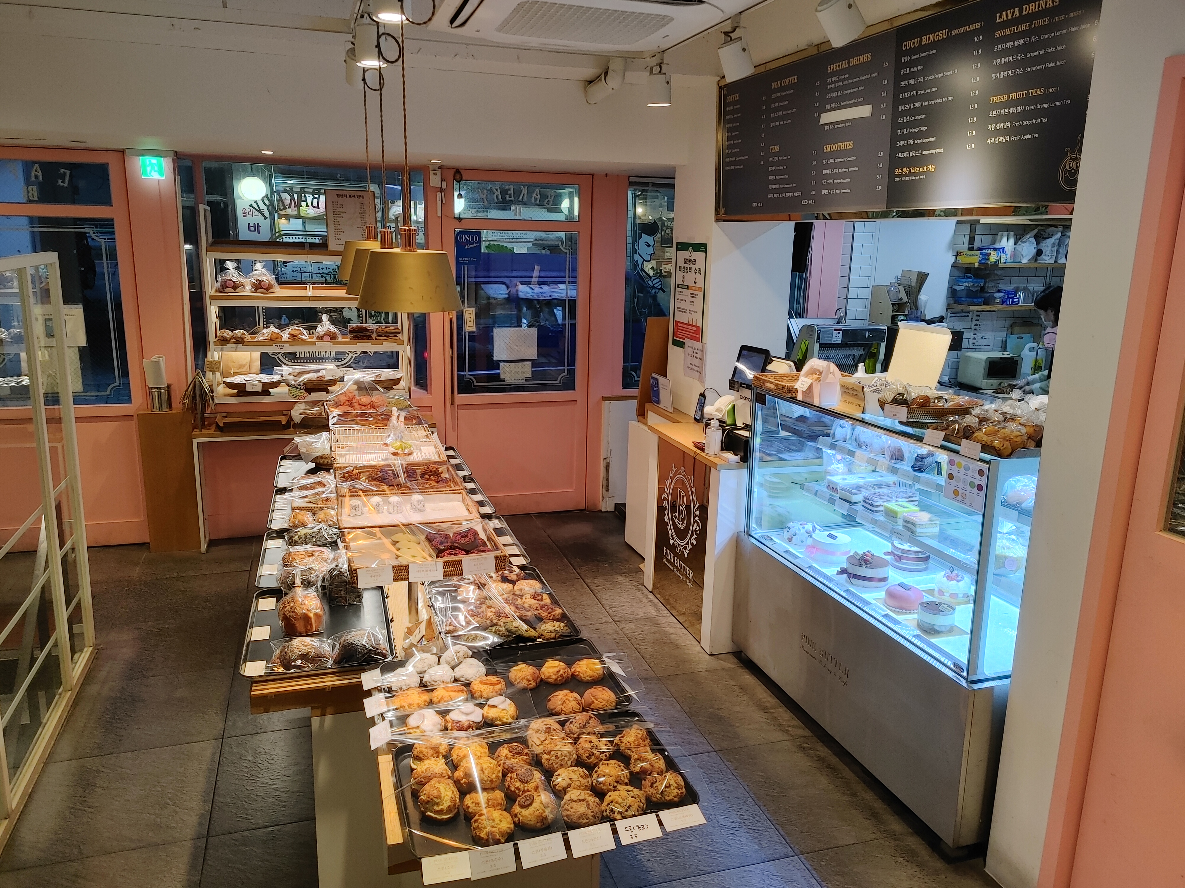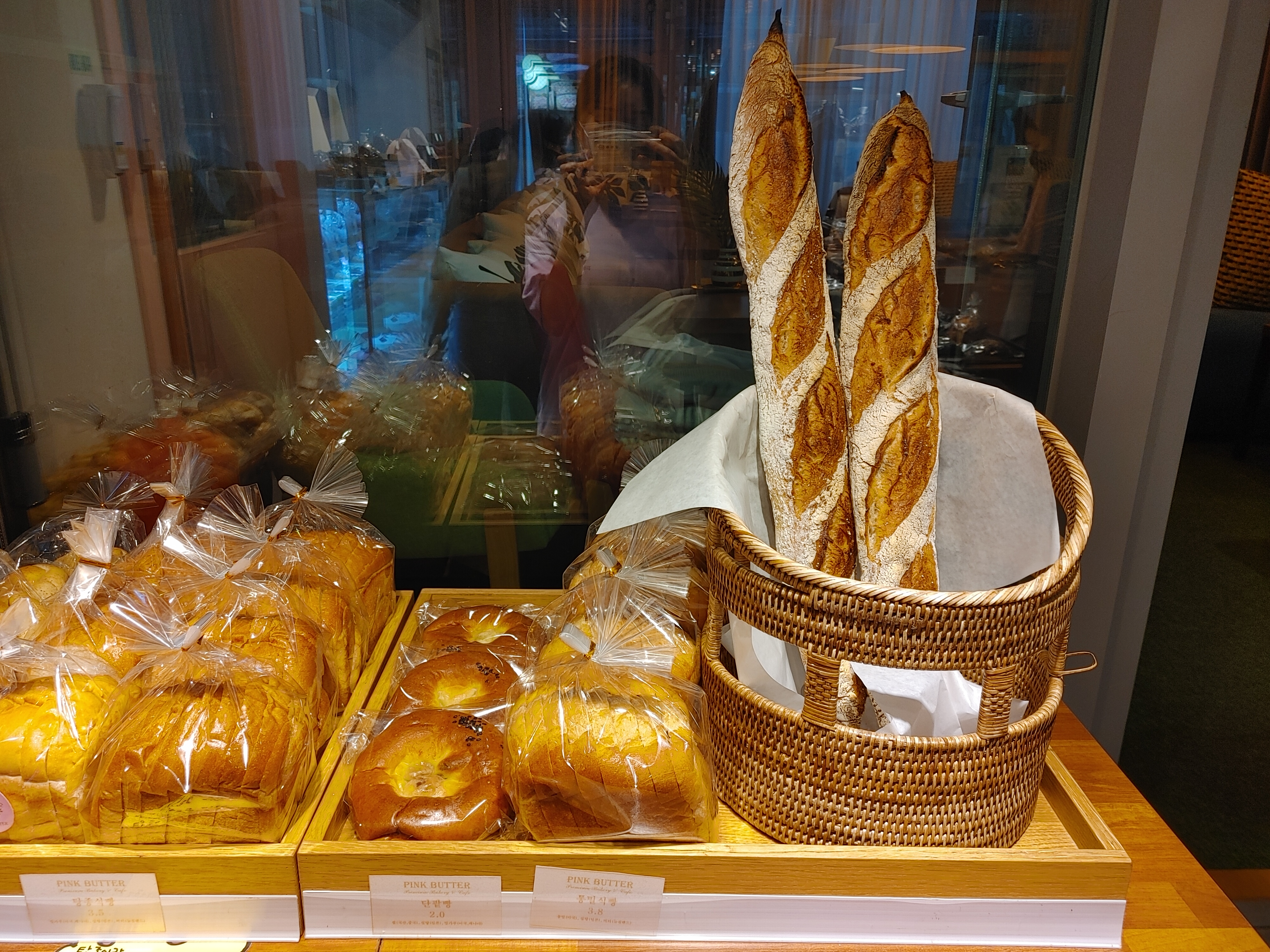 핑크버터는 외관부터 아주 '핑크핑크'해서 시선을 사로잡는다. 문이 2개인데 아무 데로 들어가도 된다. 첫 방문이었는데 생각보다 넓어서 놀랐다. 빵이 진열되어 있는 공간과 계산대는 조금 협소한 편이지만 안쪽에 넓고 쾌적한 좌석 공간이 마련되어 있었다. 그리고 지하 1층에도 자리 있음!