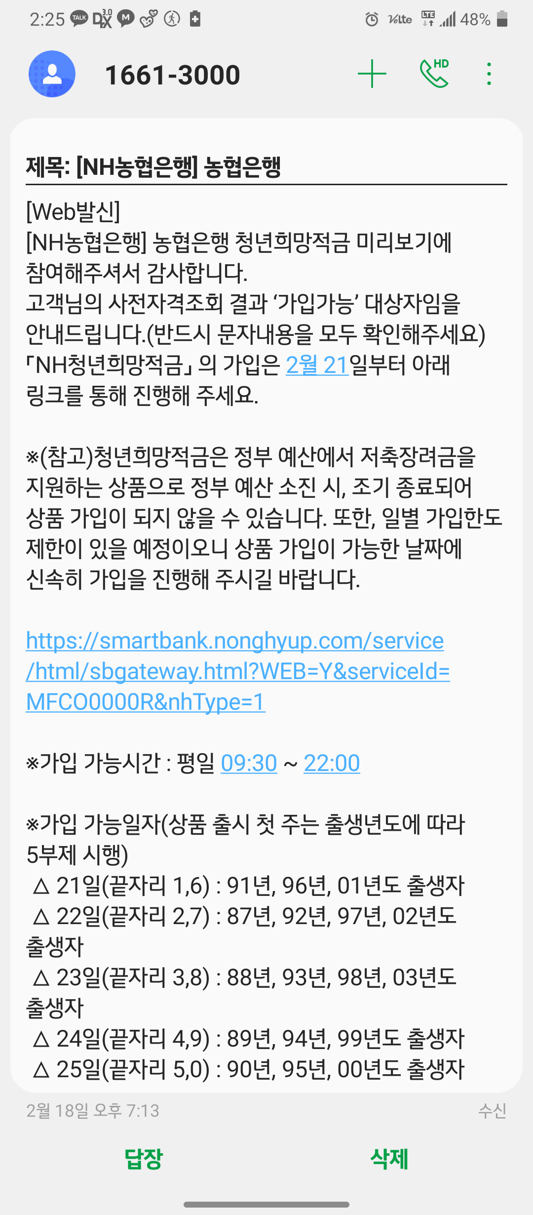 출생년도 기준 5부제이고 가입 가능 시간은 스마트 뱅킹 기준 09시 30분 ~ 22시이고, 영업점 방문시 09시 30분 ~ 15시 30분이니 참고 하시길 바란다. 영업점은 농협중앙회(단위 농협 ×)로 방문하시길!