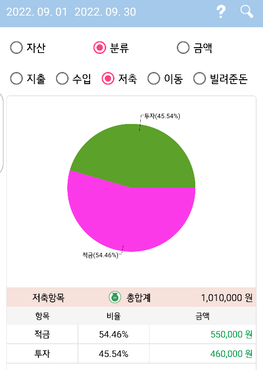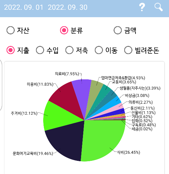 벌써 한 달이 지나 9월 가계부를 정산하려고 한다. 나는 30대 직장인 여성이고, 혼자 독립하여 사는 1인 가구이다. 이번 달도 '좋은가계부' 어플로 가계부를 기록했다.