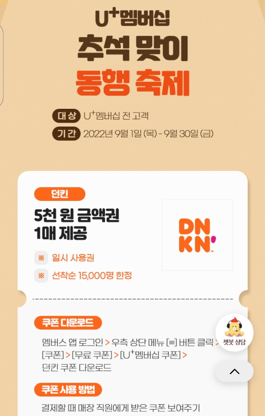 LG유플러스 멤버십에서 선착순으로 던킨도넛 5천 원권 쿠폰을 뿌렸다. 득템 해서 베이글로 바꿔먹음.🥯