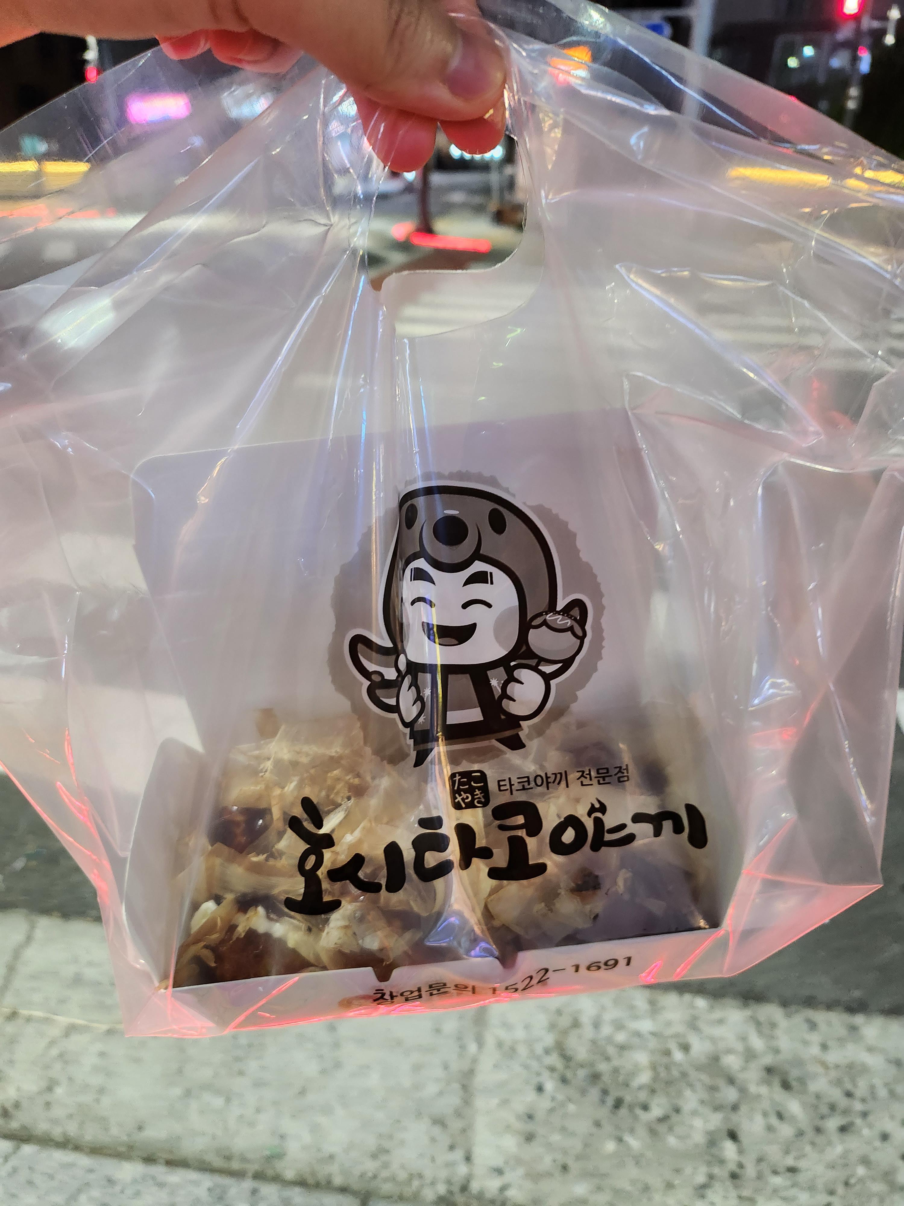나는 매장에 직접 가서 키오스크로 주문했다. 주문한 지 30분 만에 받은 타코야끼. 내가 방문했을 때가 쿠팡이츠 대량 주문 직후라 재료가 떨어져서 다시 준비하고 굽느라 시간이 오래 걸렸다. 내가 키오스크 주문 시 음식 준비 시간이 오래 걸릴 것 같다고 바로 안내해 주셔서 이해하고 기다릴 수 있었다.