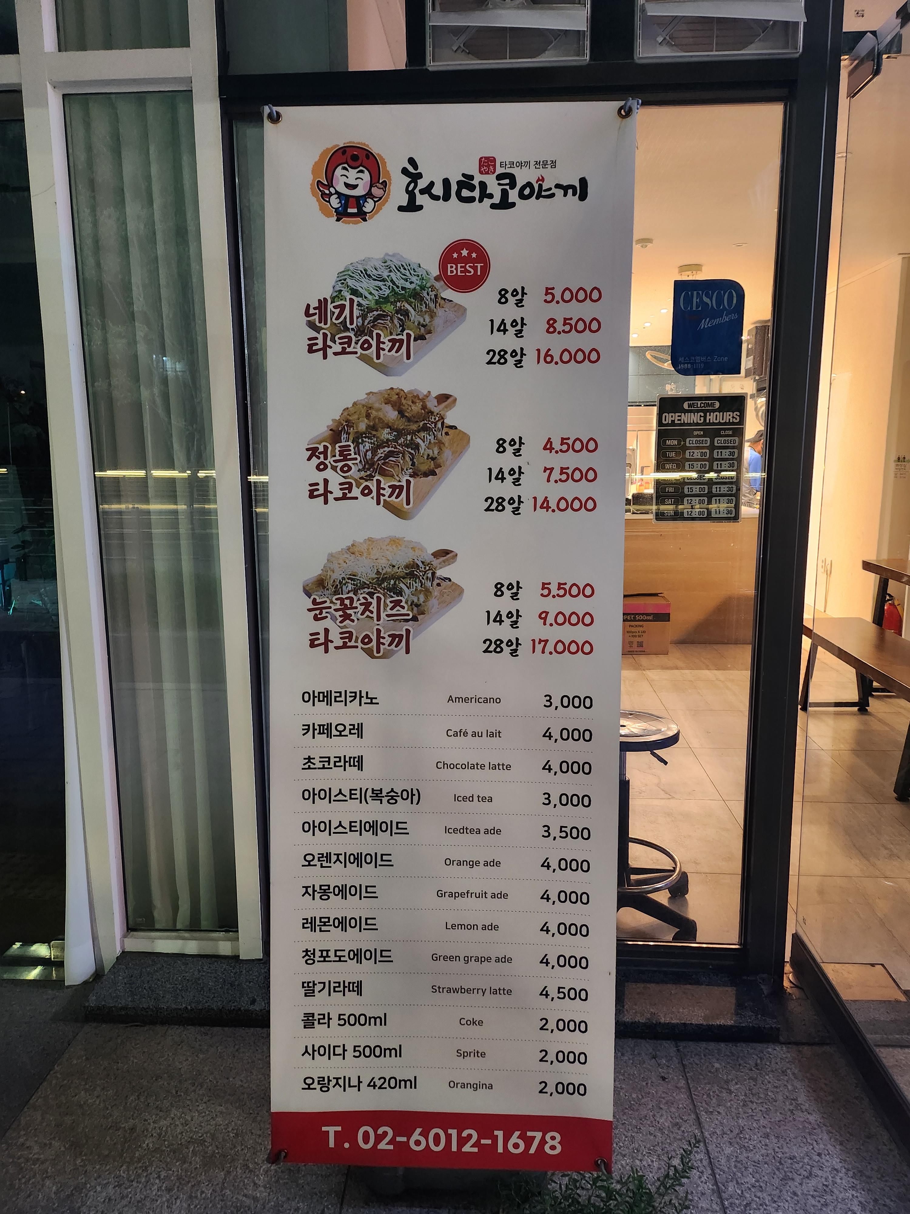 2. 호시타코야끼 메뉴 가격