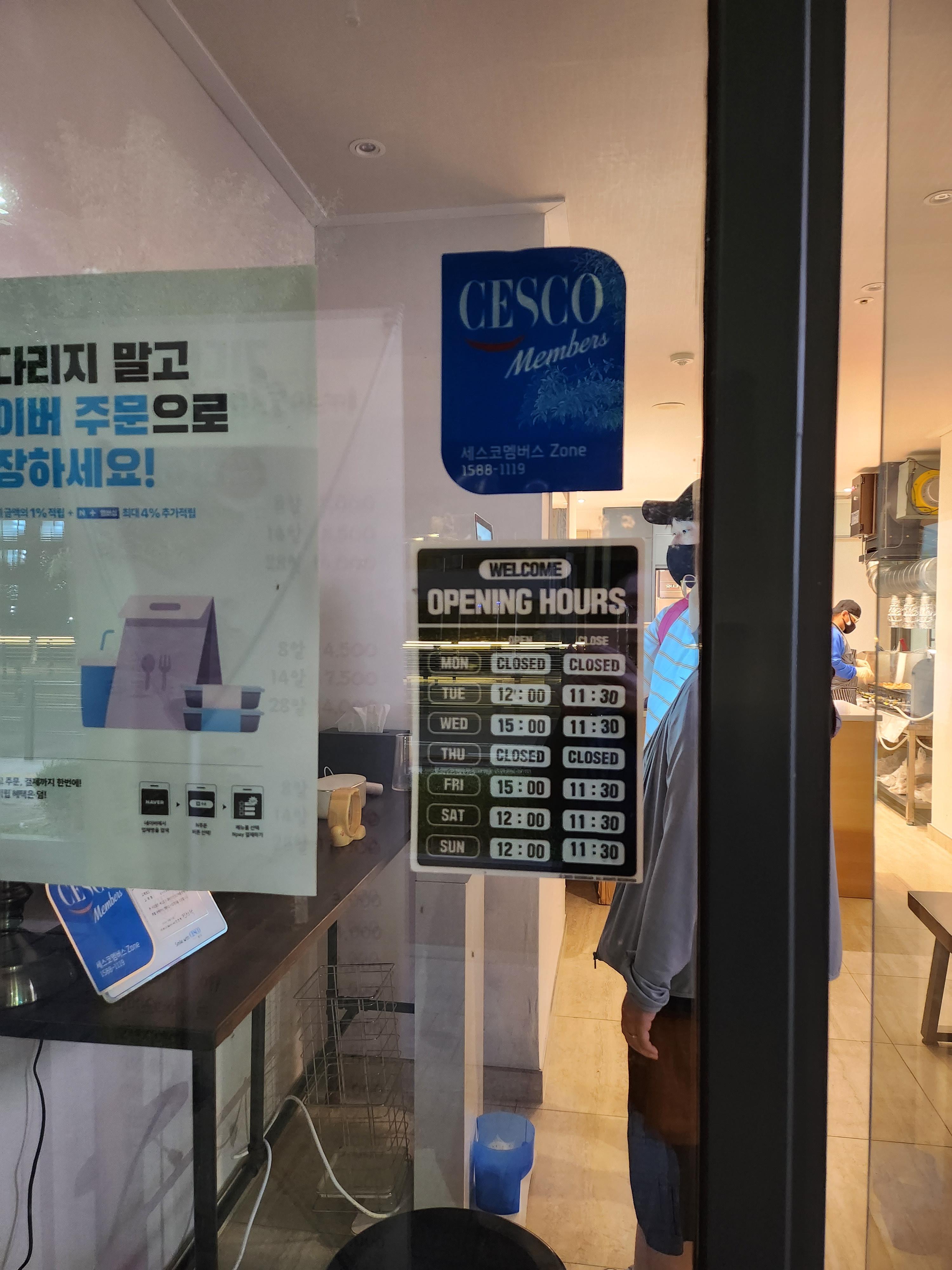 휴무는 월요일, 목요일이고 영업시간이 요일마다 조금씩 다르니 사진을 참고하시기 바란다.