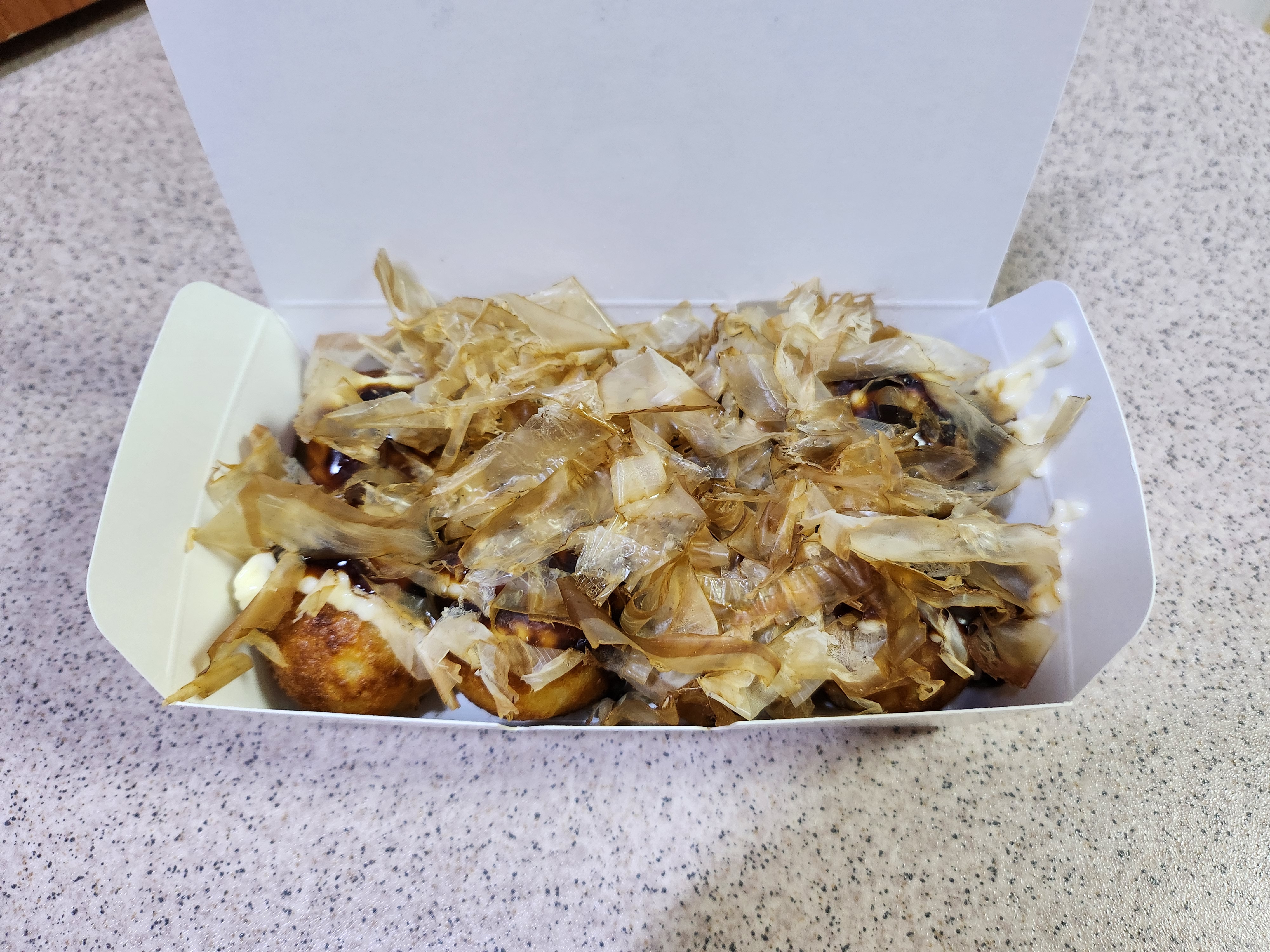 신나는 마음으로 타코야끼를 들고 집에 돌아왔다. 맛있는 냄새 합격...! 😋