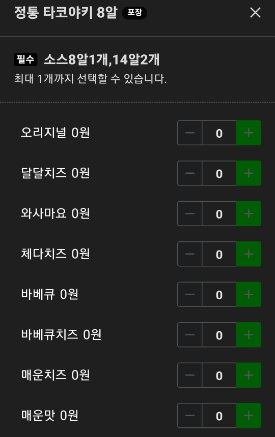 8알까지는 소스 1가지 맛을 선택할 수 있다. 14알은 소스 2 가지맛 선택, 28알은 소스 4 가지맛을 선택할 수 있다. 그리고 각종 음료수도 판매한다.